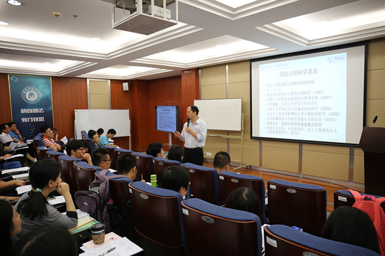 龙立荣教授围绕“中国人心理与管理模式转型”专题展开,通过问题导向设置,引导学生主动思考,采用相关的案例进行分析与总结 ,深入剖析心理特点与管理模式。课堂上师生互动频繁,气氛活跃,掌声不断。