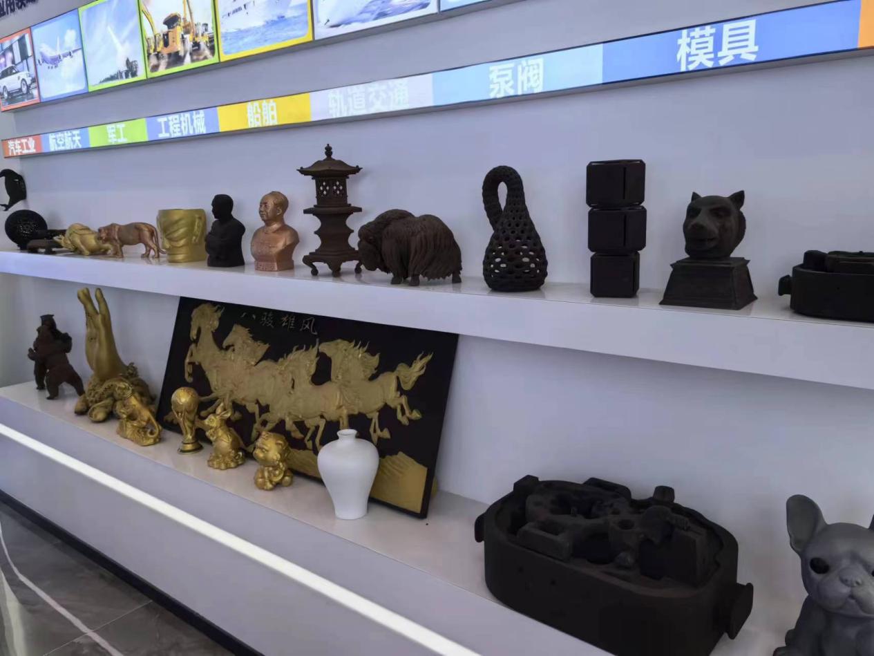 在峰华卓立公司的工作人员带领下,同学们走进了3D打印出来的工艺品世界,更加高效的设备,帮助客户不断的提升他们的生产效率,关键耗材的研发也极大地降低了用户的生产成本。时值今朝,峰华卓立公司不仅能为客户提供高精度,多工艺模式的高速3D打印设备,而且可为用户提供包括沙行,转运,浇筑,铸件清理等基于工业互联网的一揽子智能化解决方案,让传统的铸造工厂变得更加智能高效。