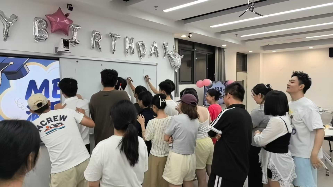 灯光渐暗,烛光摇曳。伴随着温馨的旋律,我们闭上双眼,许下对两年MBA生活的美好期许。齐声唱响的生日歌,不仅是为“满月”庆生,更是为我们自己加油鼓劲。