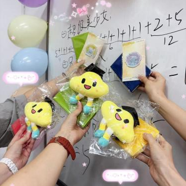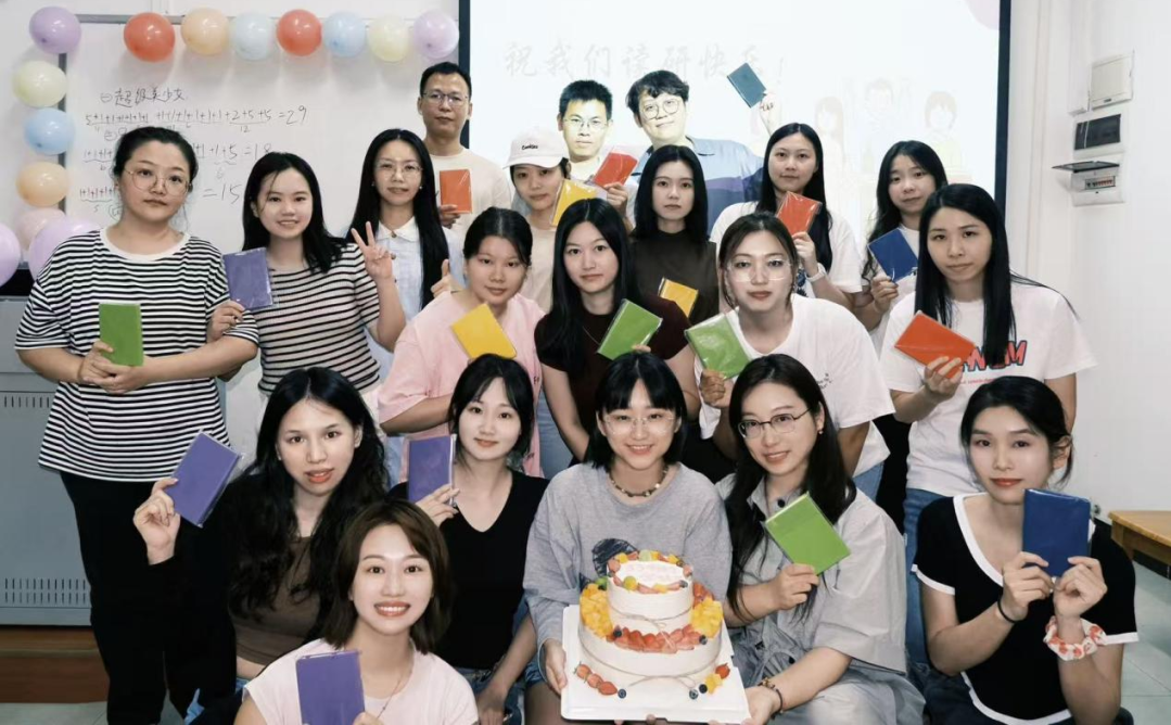 主持人为游戏获胜队伍颁发了广财吉祥物纪念奖品,全体同学合影留念,共同切蛋糕,在欢声笑语中为这段难忘的时光画上圆满句号。